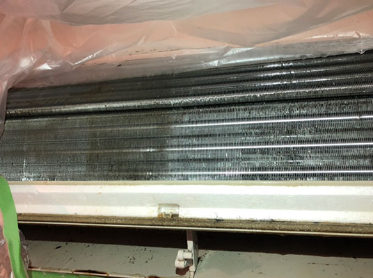 分解して内部(冷却フィン・回転ファン)を高圧洗浄ですみずみまでピカピカにすることでカビ・においがすっきりします。