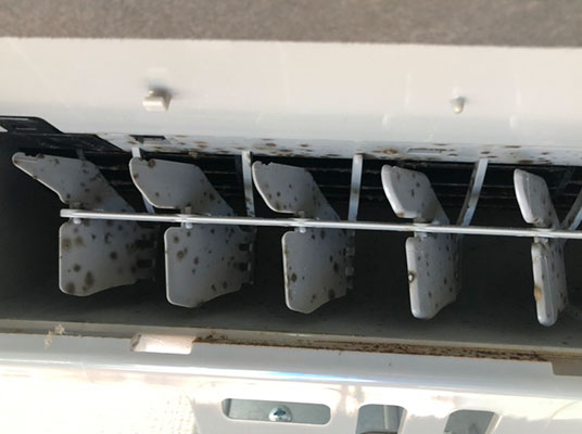 送風板のいたるところに黒の斑点(カビ)が付いていますね