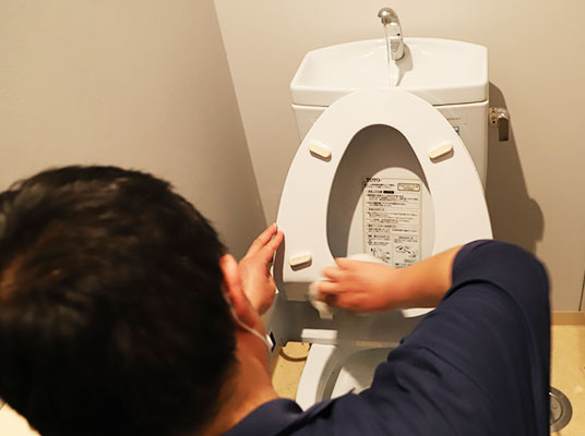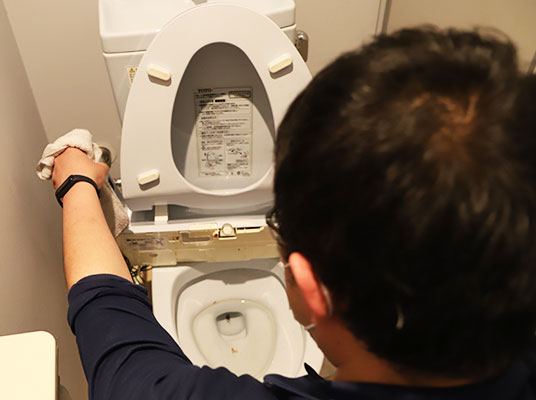 汚れが溜まりがちな便座の部分も分解しながらキレイにします