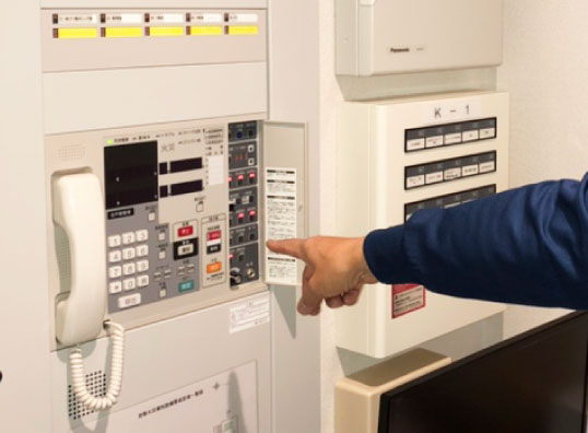 火災からマンション住民やマンションを守るため、有資格者による消防設備の点検を行います。(総合点検を年1回、機器点検を年2回)