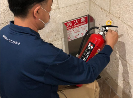 また、年数に応じて報告義務のある、連結送水管耐圧試験、消火器の取り替え等を行います。