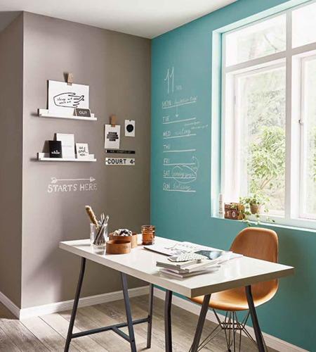 直接壁紙にチョークで描いたりすることができるユニークな黒板クロスです。