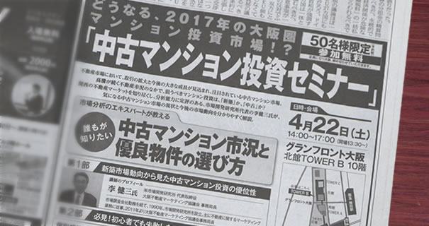 日経新聞 朝刊にて、当社が開催する中古マンション投資セミナーのご案内を掲載しました