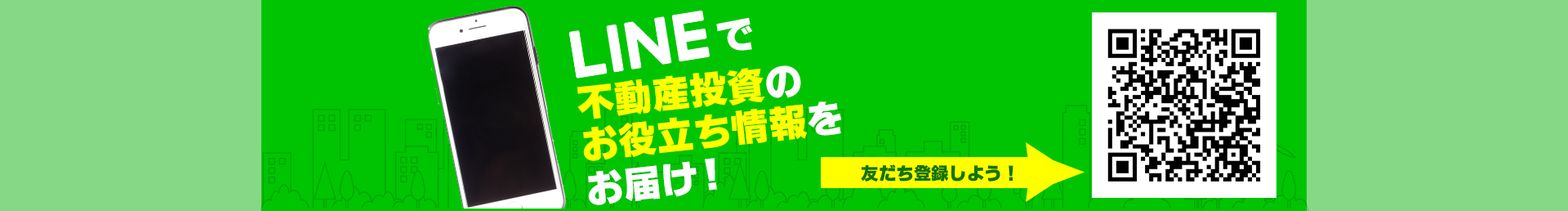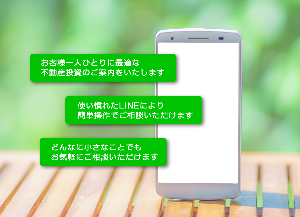そんなあなたのために、友だち登録をすると、LINEで気軽に不動産投資についてご相談いただけるカスタマーセンターをご利用いただけます。