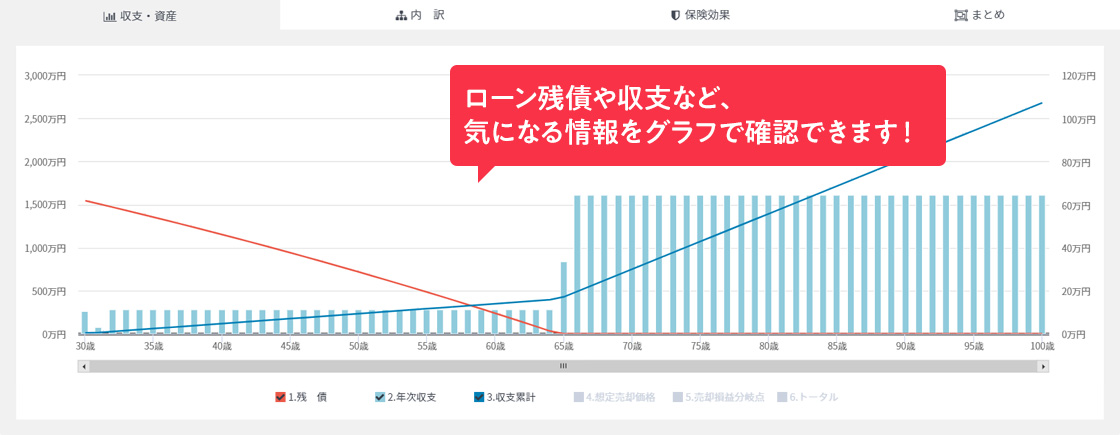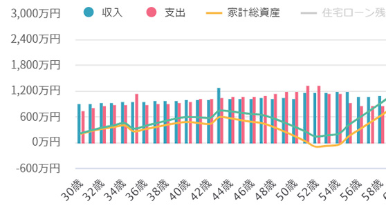 ライフシミュレーションでは現状の家計状況を表示するだけでなく、