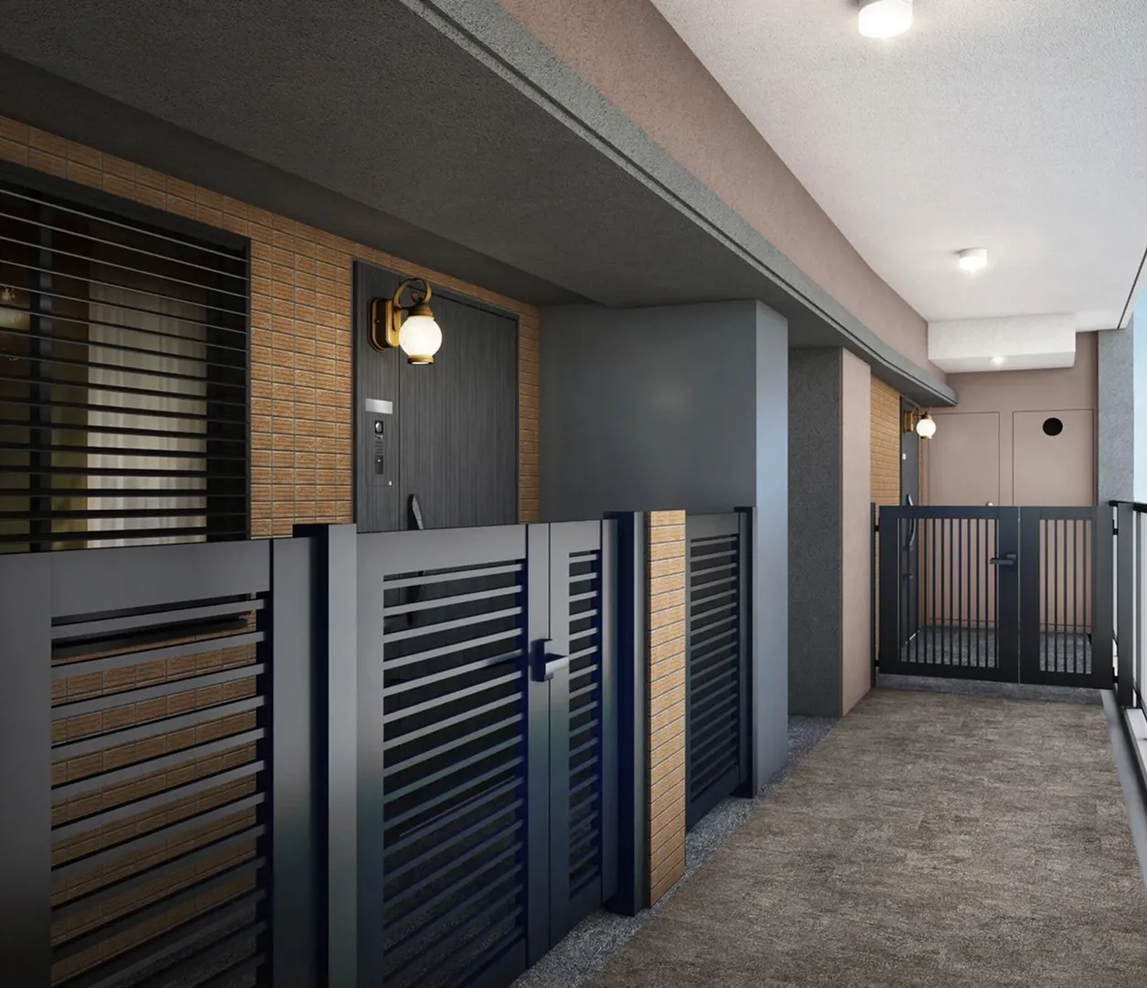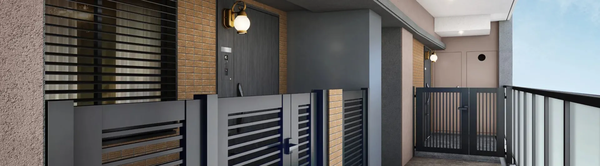 共用廊下・専用ポーチイメージパース