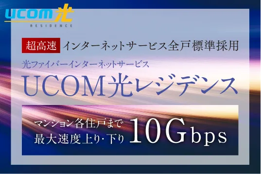 戸数の少なさによる安定した通信環境に、最大10Gbpsの超高速回線「UCOM光レジデンス」を標準採用。ストレスのない快適なネットライフを叶えます。