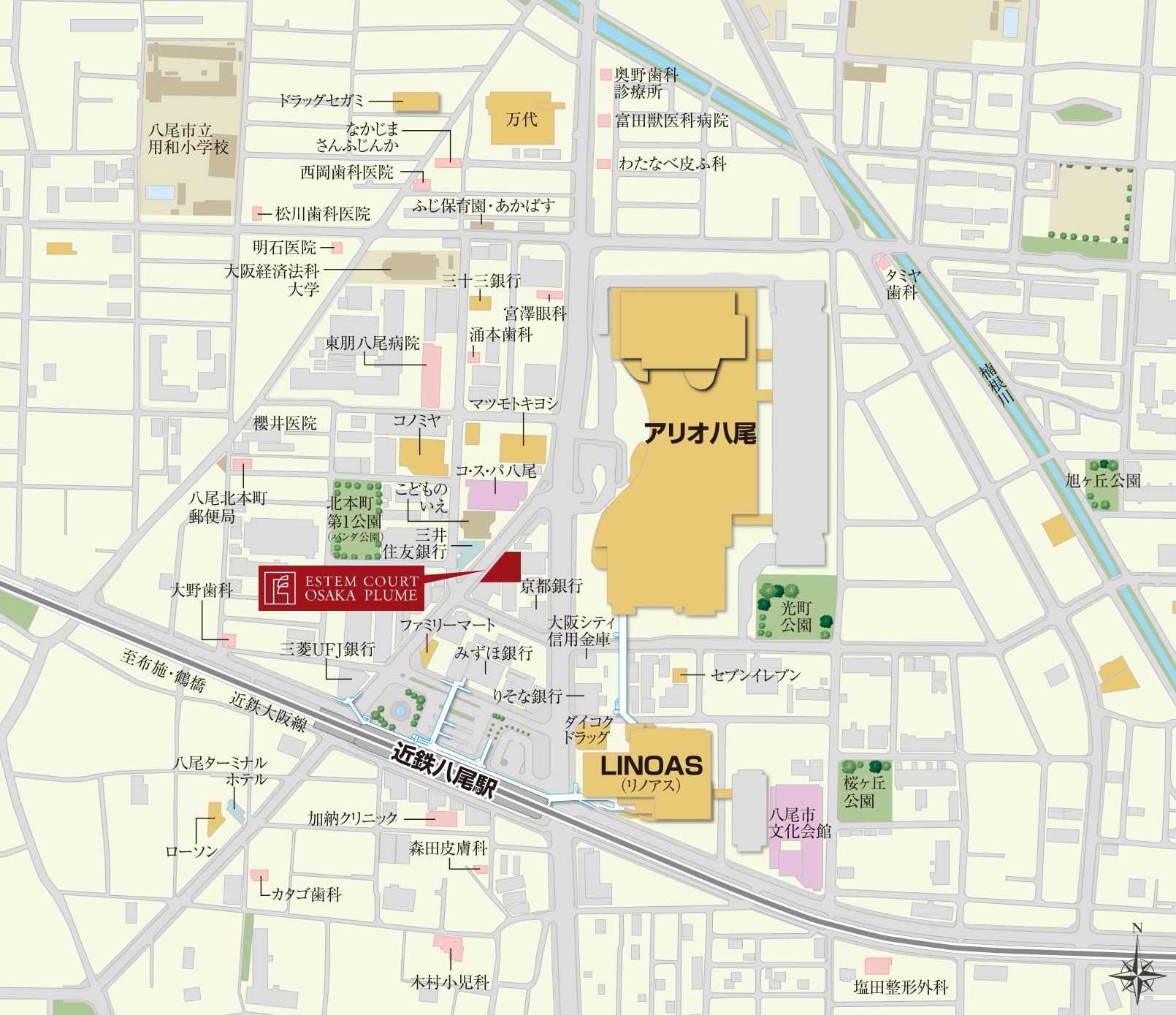 大型ショッピングモールの「アリオ八尾」などランドマークとなる施設が立ち並ぶ駅前において、ひときわ洗練された存在感を放つ外観を目指しました。