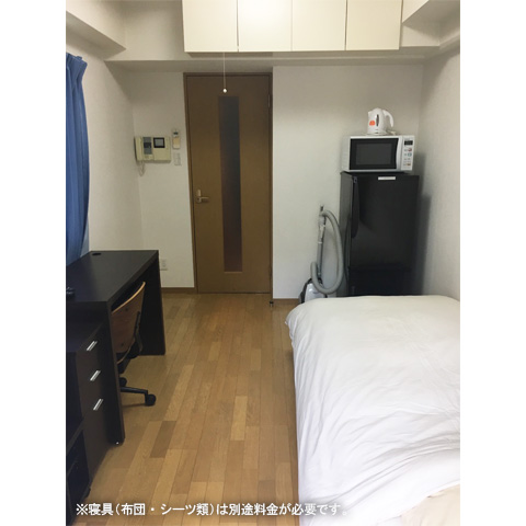 32型液晶テレビ、HDD内蔵Blu-rayレコーダー、ドラム式全自動洗濯機、暖房洗浄便座、テレビ台、エアコン、2ドア冷蔵庫、電子レンジ、電気ポット、掃除機、カーテン、ベッド |