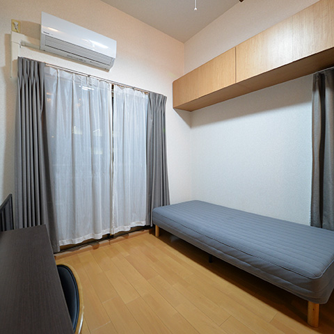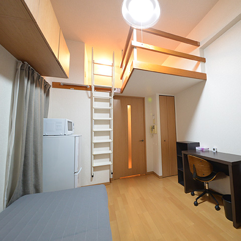 32型液晶テレビ、HDD内蔵Blu-rayレコーダー、ドラム式全自動洗濯機、暖房洗浄便座、テレビ台、エアコン、2ドア冷蔵庫、電子レンジ、電気ポット、掃除機、カーテン、ベッド |