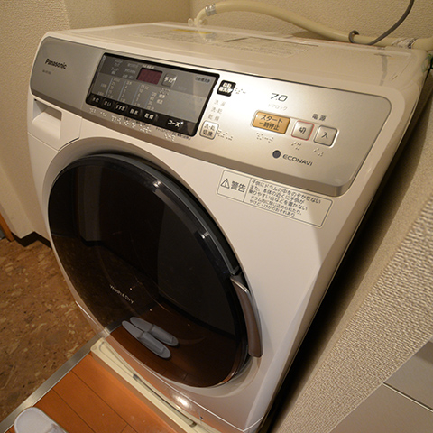 32型液晶テレビ、HDD内蔵Blu-rayレコーダー、ドラム式全自動洗濯機、暖房洗浄便座、テレビ台、エアコン、2ドア冷蔵庫、電子レンジ、電気ポット、掃除機、カーテン、ベッド |