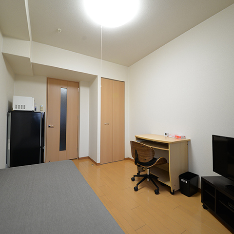 32型液晶テレビ、HDD内蔵Blu-rayレコーダー、ドラム式全自動洗濯機、暖房洗浄便座、テレビ台、エアコン、2ドア冷蔵庫、電子レンジ、電気ポット、掃除機、カーテン、ベッド |