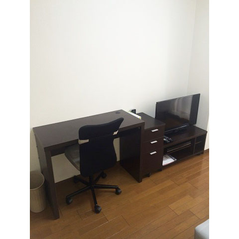 32型液晶テレビ、HDD内蔵Blu-rayレコーダー、ドラム式全自動洗濯機、暖房洗浄便座、テレビ台、エアコン、2ドア冷蔵庫、電子レンジ、電気ポット、掃除機、カーテン、ベッド |