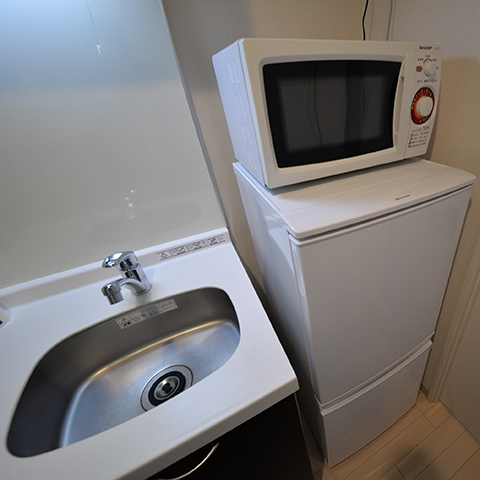 32型液晶テレビ、HDD内蔵Blu-rayレコーダー、ドラム式全自動洗濯機、暖房洗浄便座、テレビ台、エアコン、2ドア冷蔵庫、電子レンジ、電気ポット、掃除機、カーテン、ベッド |
