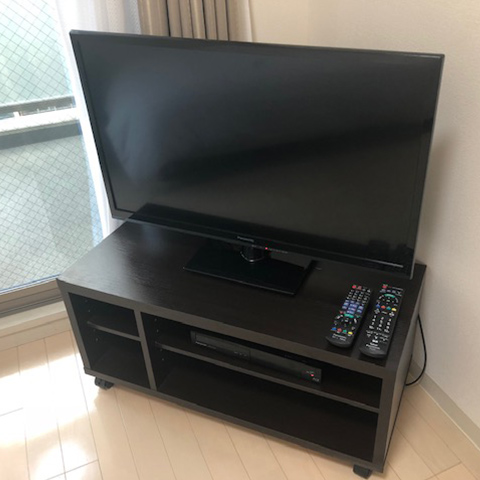 32型液晶テレビ、HDD内蔵Blu-rayレコーダー、ドラム式全自動洗濯機、暖房洗浄便座、テレビ台、エアコン、2ドア冷蔵庫、電子レンジ、電気ポット、掃除機、カーテン、ベッド |