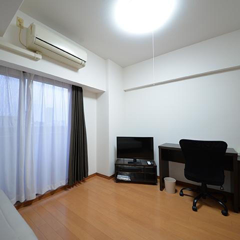 32型液晶テレビ、HDD内蔵Blu-rayレコーダー、ドラム式全自動洗濯機、暖房洗浄便座、テレビ台、エアコン、2ドア冷蔵庫、電子レンジ、電気ポット、掃除機、カーテン、ベッド |