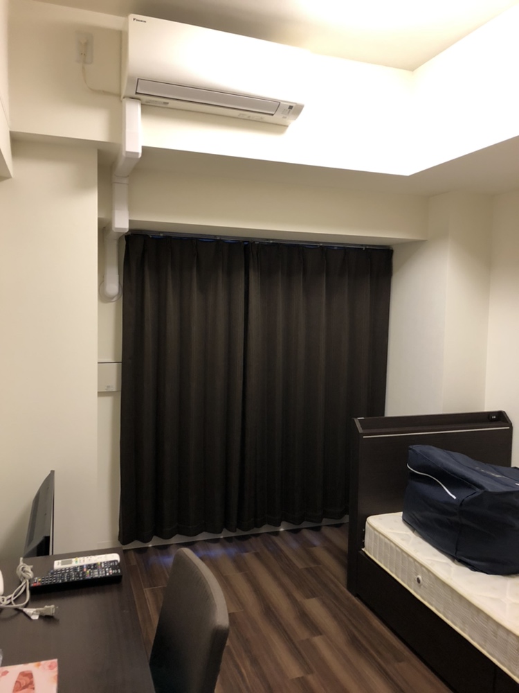 32型液晶テレビ、HDD内蔵Blu-rayレコーダー、ドラム式全自動洗濯機、暖房洗浄便座、テレビ台、エアコン、2ドア冷蔵庫、電子レンジ、電気ポット、掃除機、カーテン、ベッド |