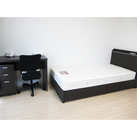 32型液晶テレビ、HDD内蔵Blu-rayレコーダー、ドラム式全自動洗濯機、暖房洗浄便座、テレビ台、エアコン、2ドア冷蔵庫、電子レンジ、電気ポット、掃除機、カーテン、ベッド |