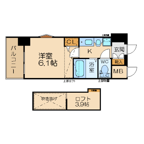 また、ロフト付の3m超えの天井高でゆったり空間、室内広々使えます。