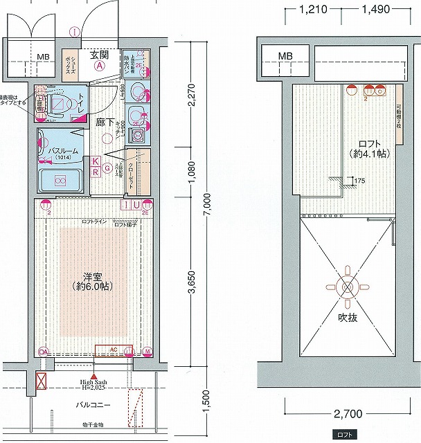 | 間取り | 1K +ロフト(18.90㎡) |