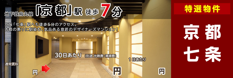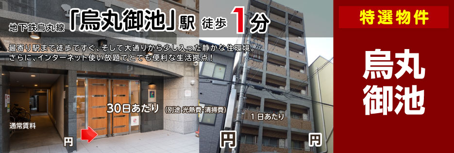 京都市中京区・烏丸御池 徒歩1分・マンスリーマンション! 四条まで徒歩圏、観光にもビジネスにも便利!