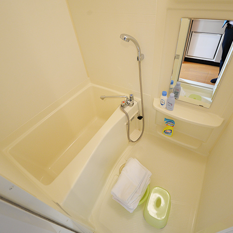 タオル、バスタオル、シャンプー・リンス、ボディソープ、洗面器、風呂イス、風呂用洗剤、バススポンジ、バスマット、スリッパ、紙コップ、ティッシュ、ハンドソープ、トイレットペーパー、トイレ掃除用ブラシ、トイレ用洗剤、洗濯洗剤、ハンガー、小物干しハンガー