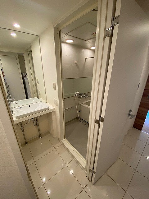 他に、2口ガスコンロ、ガス漏れ警報器、一面鏡付きの洗面カウンターが付いておりますੈ❤︎