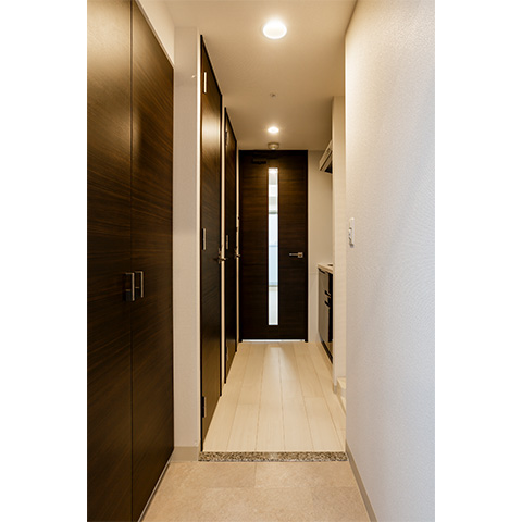 本物件は平成30年に完成した築浅のマンションで、重厚感のあるエントランスとホールを有しており、まるでホテルのような雰囲気をもっています。そのほか、設備としてハンズフリーTVモニター付オートロックを備え、セキュリティ万全。2口ガスコンロ・エアコン・暖房洗浄円便座・宅配ボックス等、築浅物件ならではの充実ぶりです。