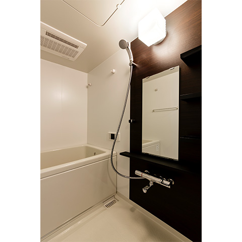 とくにおすすめとなるポイントは、バスルームに大きめのサイズ(1116サイズ)を採用し、追い焚き機能や自動お湯張り、タイマー機能などを備えたゴージャスな仕様となっております。バスタイムをゆっくり過ごしたい方に、とくに評価をいただいている仕様となっております。長めの滞在ならビジネスホテルよりマンスリーマンションがお得です!