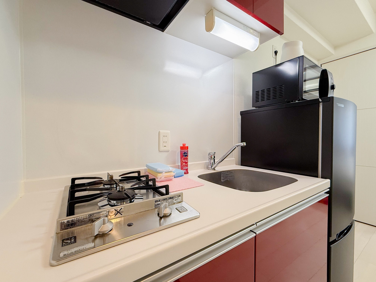 お部屋はハンズフリーTVモニター付オートロック完備でセキュリティ万全。2口ガスコンロ・エアコン・ウォシュレット・人感センサー対応ダウンライト・宅配ボックス等、設備充実です。
