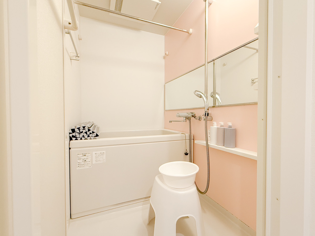 タオル、バスタオル、シャンプー・リンス、ボディソープ、洗面器、風呂イス、風呂用洗剤、バススポンジ、バスマット、スリッパ、紙コップ、ティッシュ、ハンドソープ、トイレットペーパー、トイレ掃除用ブラシ、トイレ用洗剤、洗濯洗剤、ハンガー、小物干しハンガー