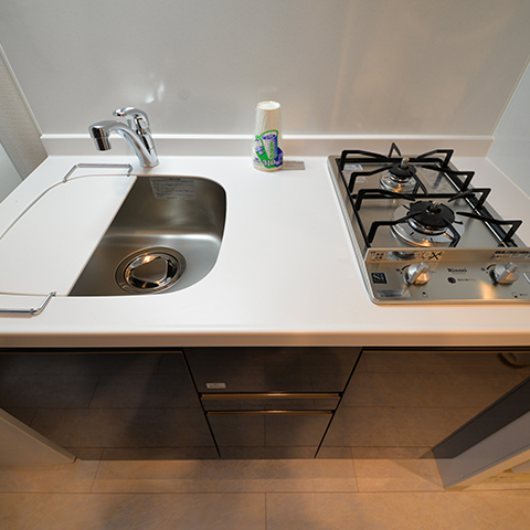 キッチンには2口ガスコンロ、╰(*´︶`*)╯♡効率よく料理ができます。