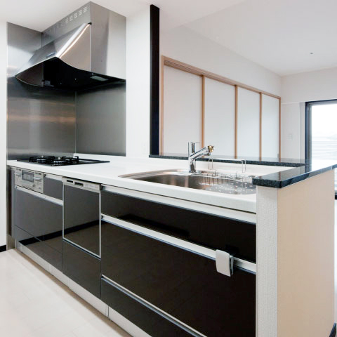 茶碗、お椀、丼、大皿・小皿(各2枚)、箸、鍋、フライパン、包丁・まな板、おたま、フライ返し、菜箸、ボウル・ざる、スプーン・フォーク、マグカップ、食器水切カゴ、食器洗剤、スポンジ、布巾、皮むき・おろし器