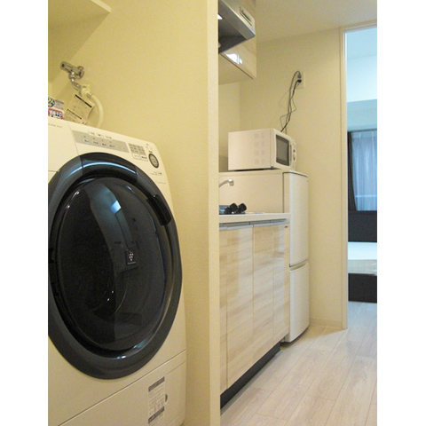 テレビ・テレビ台、ドラム式洗濯乾燥機、縦型洗濯機、2ドア冷凍冷蔵庫、電子レンジ、カーテン、ベッド、電気ケトル、掃除機、ドライヤー、デスク・イス、ハンガー5本、トイレットペーパー2個、ティッシュ1箱、温水洗浄便座、インターネット無料、バス・トイレ別、2口ガスコンロ、浴室乾燥機、クローゼット、独立洗面台、TVモニターホン |