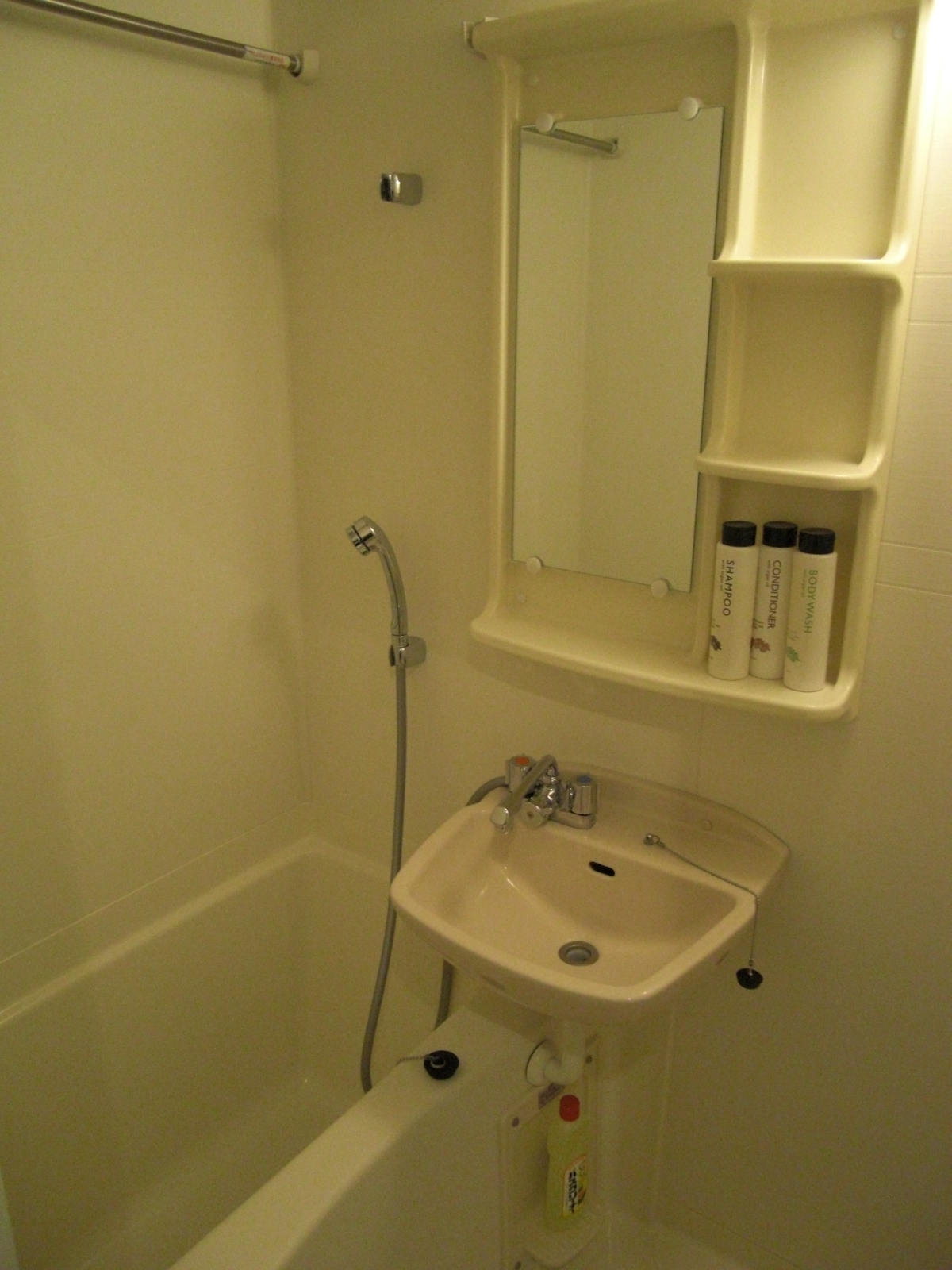 タオル、バスタオル、シャンプー・リンス、ボディソープ、洗面器、風呂イス、風呂用洗剤、バススポンジ、バスマット、スリッパ、紙コップ、ティッシュ、ハンドソープ、トイレットペーパー、トイレ掃除用ブラシ、トイレ用洗剤、洗濯洗剤、ハンガー、小物干しハンガー