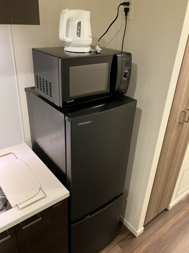 テレビ・テレビ台、縦型洗濯機、2ドア冷凍冷蔵庫、電子レンジ、カーテン、ベッド、電気ケトル、掃除機、ドライヤー、ハンガー5本、トイレットペーパー2個、ティッシュ1箱、温水洗浄便座、バス・トイレ別、2口ガスコンロ、浴室乾燥機、クローゼット、独立洗面台、TVモニターホン |